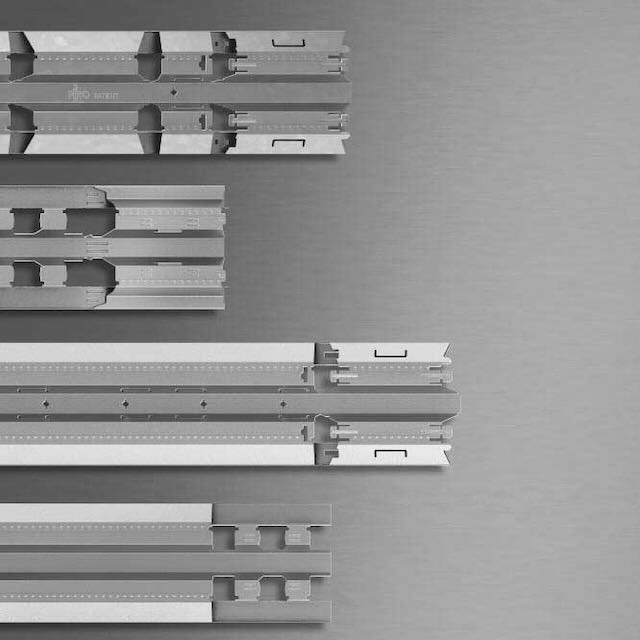 Anique profile with four adjustable components that fit together creating different solutions suitable for every storage and handling purpose.